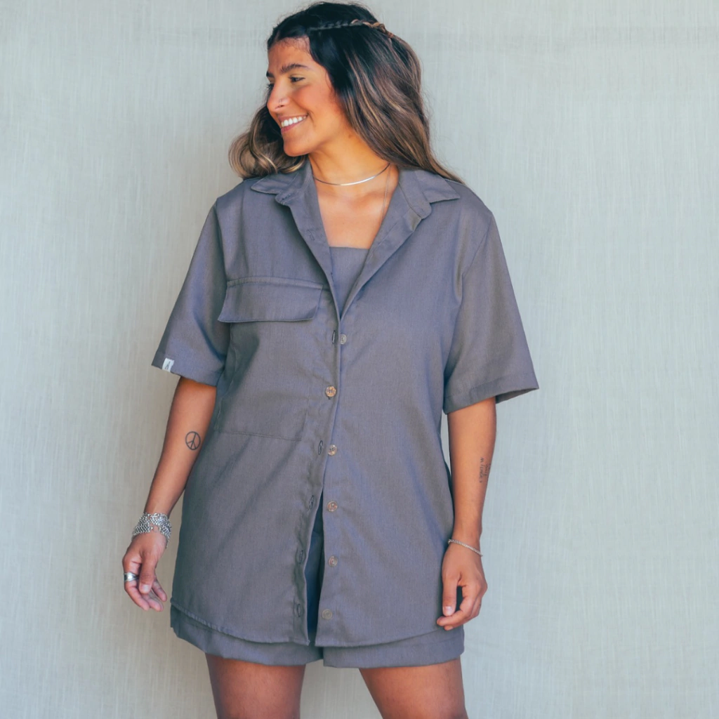 Leve e versátil, esta camisa de manga curta com modelo over traz conforto e estilo para qualquer ocasião. O fechamento frontal com botões ecológicos feitos de garrafa PET com ervas desidratadas adiciona um toque sustentável à peça.