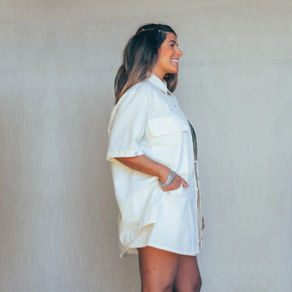 Leve e sofisticada, esta camisa de modelagem over é ideal para um visual moderno e versátil. Com fechamento frontal e nos punhos em botões ecológicos feitos de garrafa PET com ervas desidratadas, une estilo e sustentabilidade em uma única peça.